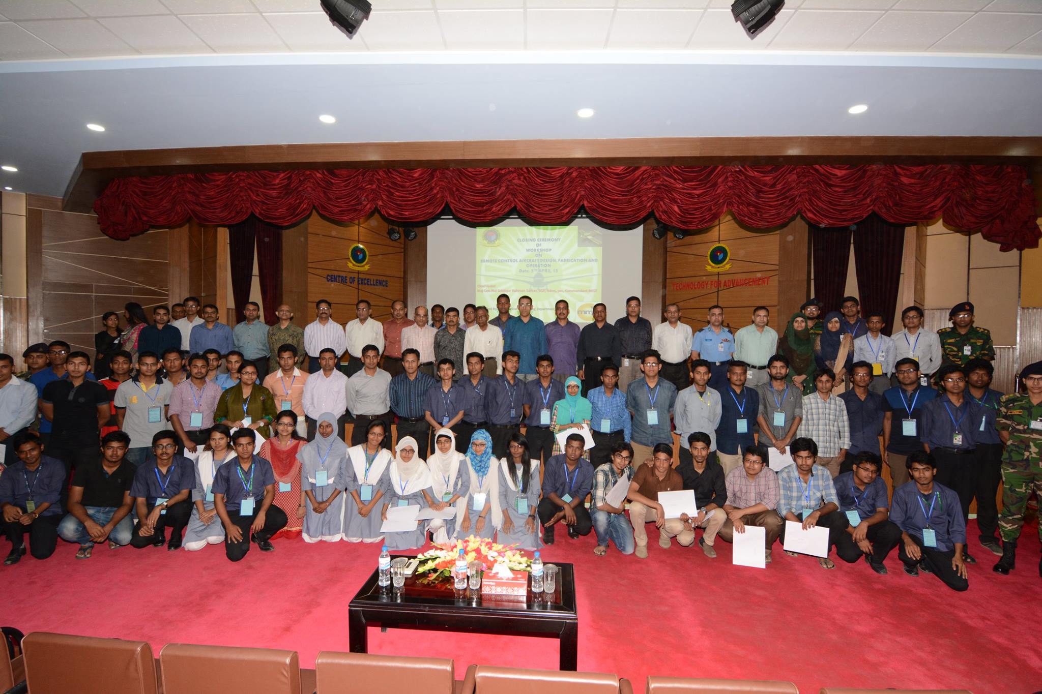 A 7 day long workshop on "Remote Controlled Aircraft Design, Fabrication and Operation" has been successfully conducted by Department of Aeronautical Engineering, Military Institute of Science and Technology from 30 March-5 April, 2015. The workshop was inaugurated by Air Marshal Muhammad Enamul Bari, BBP, ndu,psc, Chief of Air Staff on 24 March. The Commandant of MIST, Major General Md Siddiqur Rahman Sarker, SGP, hdmc, psc and Head of Aeronautical Engineering Department, Md Abdus Salam, psc was also present at the opening ceremony along with representatives from Bangladesh Defense and Civil Aviation Authority of Bangladesh (CAAB). The main program started from 30th March with 16 theoretical classes along with the practical classes. A total of 175 participants from different national and private universities, representatives from Bangladesh Army, Navy and Air force participated in the workshop. At the end of the course, the participants were divided into groups and designed small micro size remote controlled aircrafts which had test flights as well in the sky of MIST.