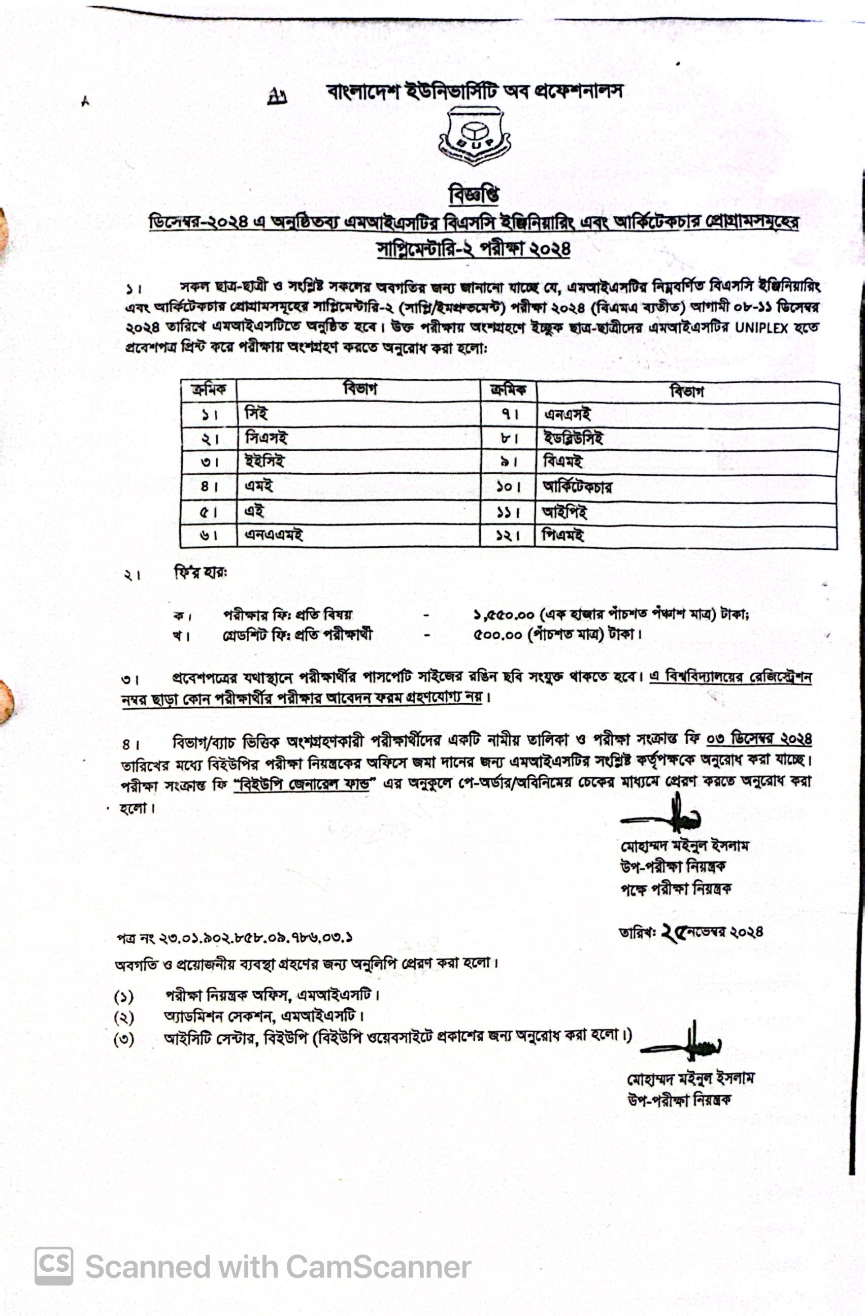 Notice Regarding Supplementary Exam-II, December-2024 (Supplementary / Improvement) for B.Sc in Engineering and Architecture Program