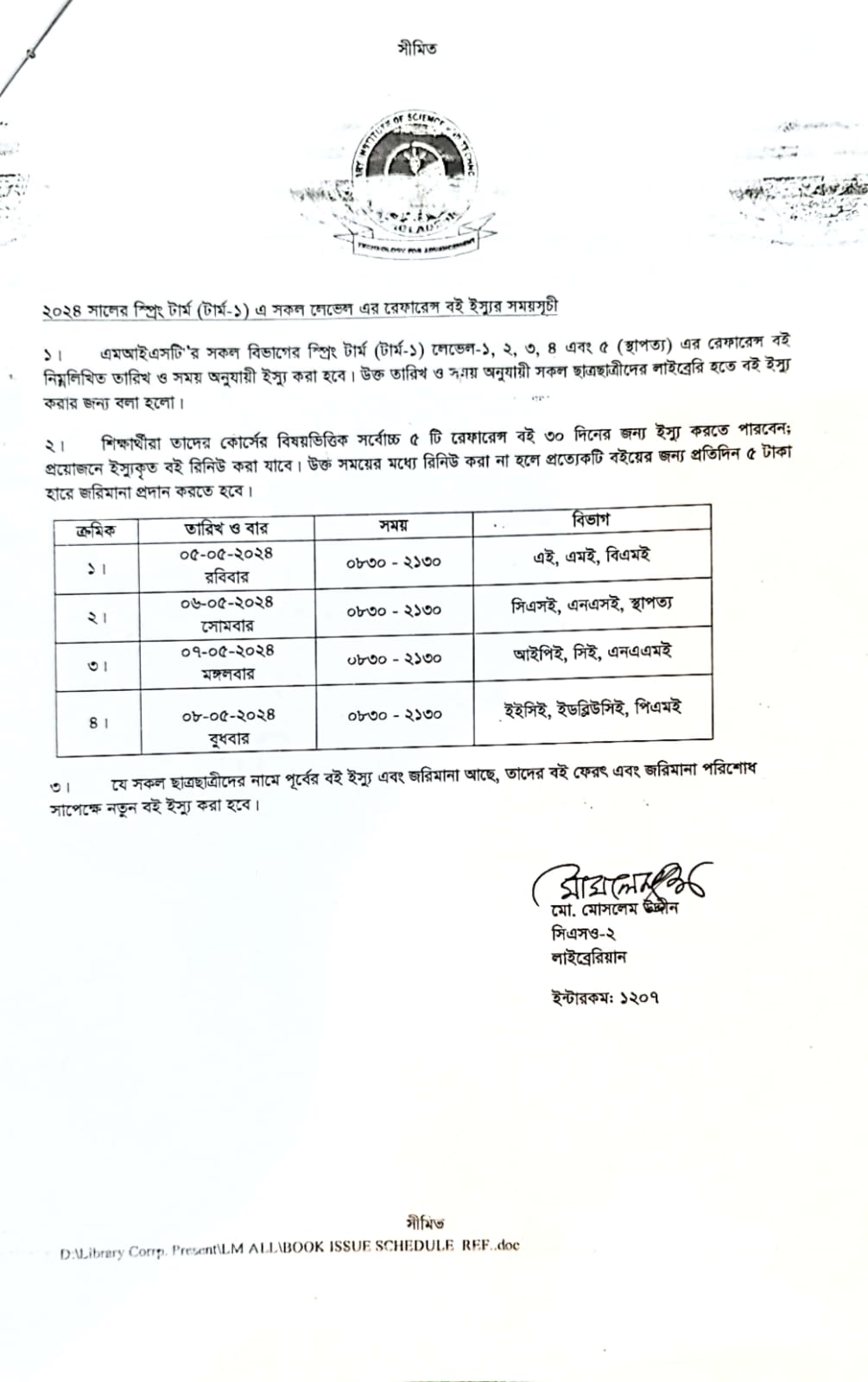 REFERENCE BOOK ISSUE SCHEDULE SPRING 2024